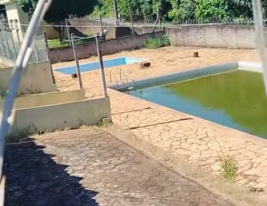 A piscina, que antes servia como espaço de lazer para crianças, idosos e famílias inteiras, hoje é um retrato da negligência. Uma das piscinas está completamente vazia, largada. A outra, em estado ainda pior: cheia de água verde, tomada por lodo, sujeira e, muito provavelmente, criadouro de pernilongos e mosquitos da dengue.