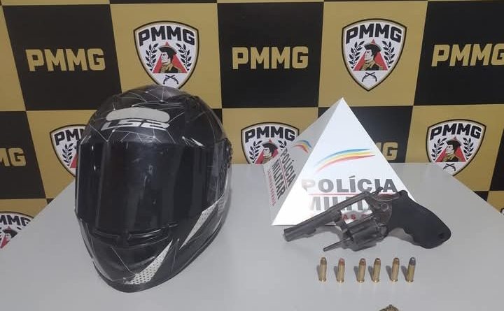 🔫 COM ELES, OS MILITARES ENCONTRARAM UM REVÓLVER CALIBRE .38 MUNICIADO COM SEIS CARTUCHOS INTACTOS, UMA PORÇÃO DE MACONHA E UM CAPACETE POSSIVELMENTE USADO NA AÇÃO CRIMINOSA. 🔫